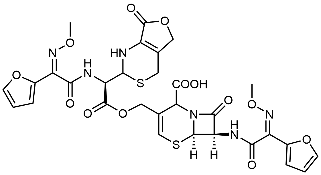 Synonyms: (6R,7R)-7-((Z)-2-(furan-2-yl)-2-(methoxyimino)acetamido)-3-((7R,Z)-4-(furan-2-yl)-5,8-dioxo-7-(7-oxo-1,2,5,7-tetrahydro-4H-furo[3,4-d][1,3]thiazin-2-yl)-2,9-dioxa-3,6-diazadec-3-en-10-yl)-8-oxo-5-thia-1-azabicyclo[4.2.0]oct-3-ene-2-carboxylic acid