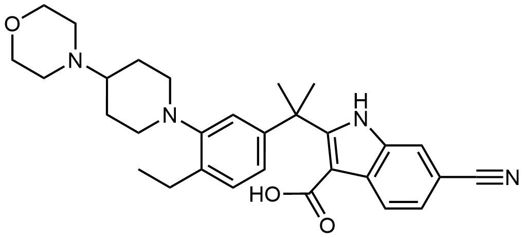 Synonyms: 6-cyano-2-(2-(4-ethyl-3-(4-morpholinopiperidin-1-yl)phenyl)propan-2-yl)-1H-indole-3-carboxylic acid