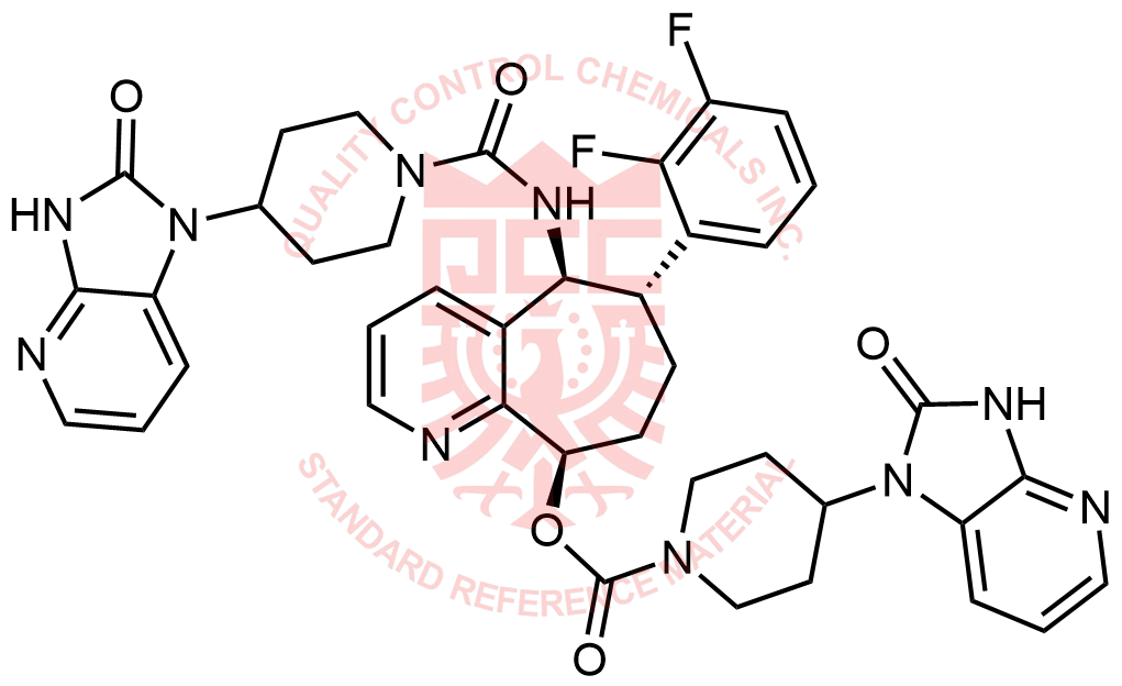 Synonyms: (5S,6S,9R)-6-(2,3-difluorophenyl)-5-(4-(2-oxo-2,3-dihydro-1H-imidazo[4,5-b]pyridin-1-yl)piperidine-1-carboxamido)-6,7,8,9-tetrahydro-5H-cyclohepta[b]pyridin-9-yl 4-(2-oxo-2,3-dihydro-1H-imidazo[4,5-b]pyridin-1-yl)piperidine-1-carboxylate