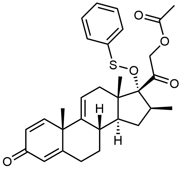 Synonyms: 2-oxo-2-((8S,10S,13S,14S,16S,17R)-10,13,16-trimethyl-3-oxo-17-((phenylthio)oxy)-6,7,8,10,12,13,14,15,16,17-decahydro-3H-cyclopenta[a]phenanthren-17-yl)ethyl acetate