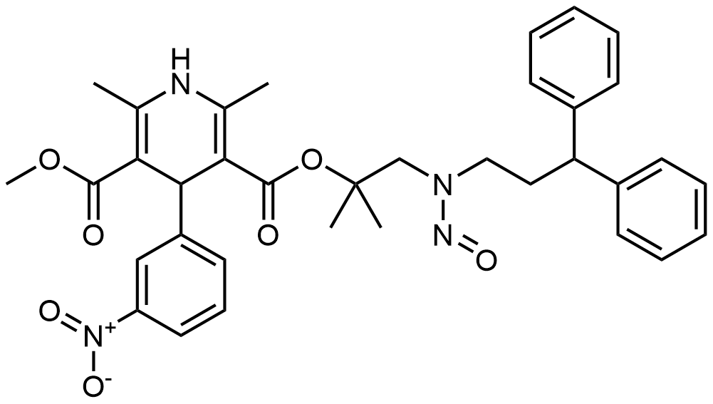 Synonyms: 3-(1-((3,3-diphenylpropyl)(nitroso)amino)-2-methylpropan-2-yl) 5-methyl 2,6-dimethyl-4-(3-nitrophenyl)-1,4-dihydropyridine-3,5-dicarboxylate