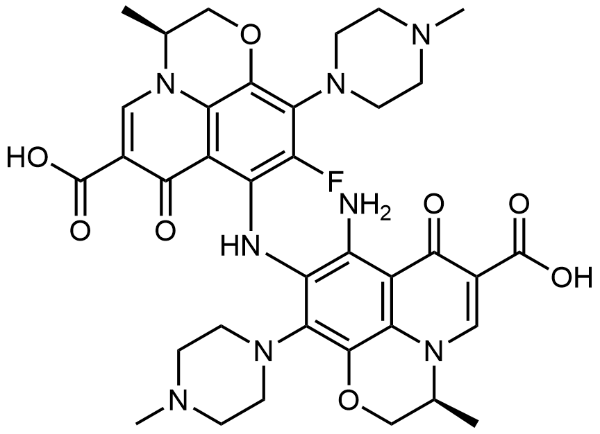 Synonyms: (S)-8-amino-9-(((S)-6-carboxy-9-fluoro-3-methyl-10-(4-methylpiperazin-1-yl)-7-oxo-2,3-dihydro-7H-[1,4]oxazino[2,3,4-ij]quinolin-8-yl)amino)-3-methyl-10-(4-methylpiperazin-1-yl)-7-oxo-2,3-dihydro-7H-[1,4]oxazino[2,3,4-ij]quinoline-6-carboxylic acid