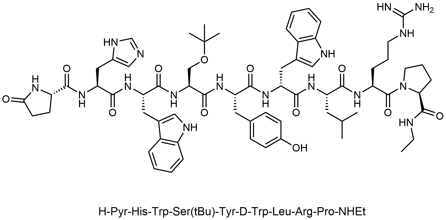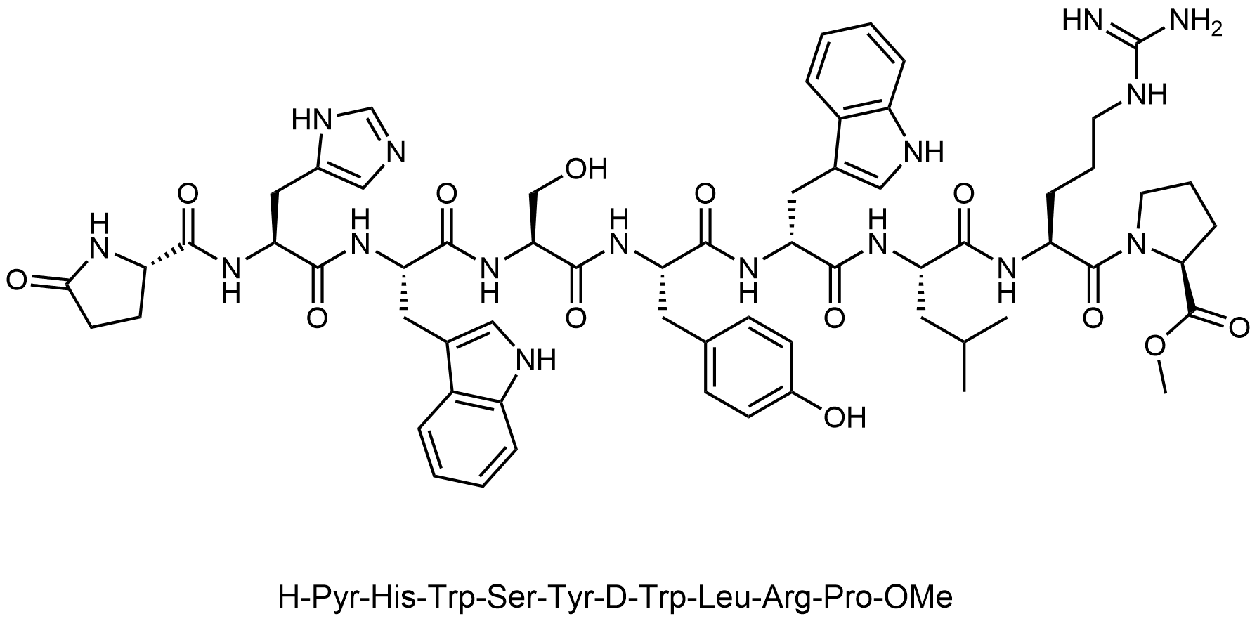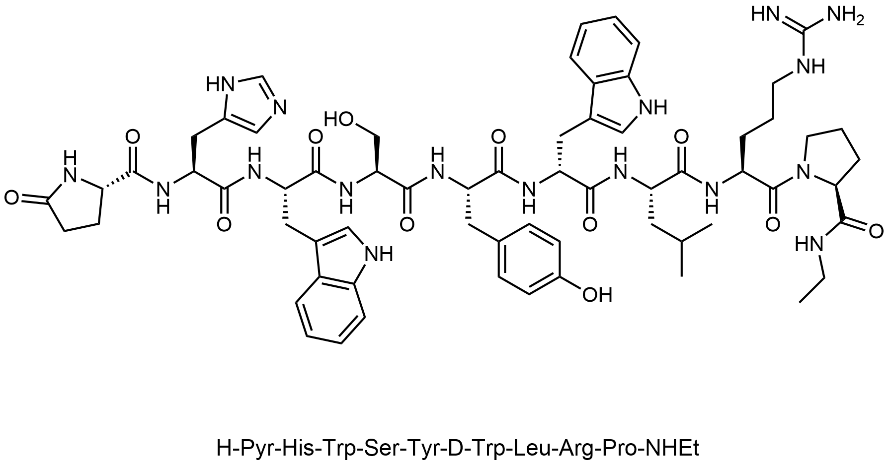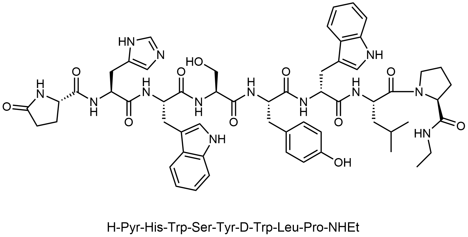 Synonyms: (S)-N-ethyl-1-(((S)-5-oxopyrrolidine-2-carbonyl)-L-histidyl-L-tryptophyl-L-seryl-L-tyrosyl-D-tryptophyl-L-leucyl)pyrrolidine-2-carboxamide