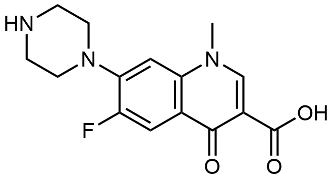 Synonyms: 6-fluoro-1-methyl-4-oxo-7-(piperazin-1-yl)-1,4-dihydroquinoline-3-carboxylic acid