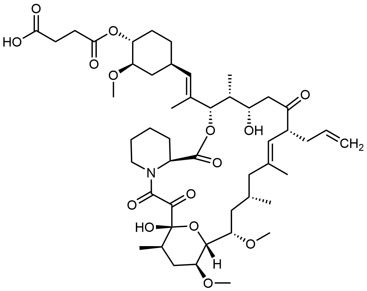 Synonyms: 4-(((1R,2R,4R)-4-((E)-2-((3S,4R,5S,8R,12S,14S,15R,16S,18R,19R,26aS,E)-8-allyl-5,19-dihydroxy-14,16-dimethoxy-4,10,12,18-tetramethyl-1,7,20,21-tetraoxo-1,4,5,6,7,8,11,12,13,14,15,16,17,18,19,20,21,23,24,25,26,26a-docosahydro-3H-15,19-epoxypyrido[2,1-c][1]oxa[4]azacyclotricosin-3-yl)prop-1-en-1-yl)-2-methoxycyclohexyl)oxy)-4-oxobutanoic acid
