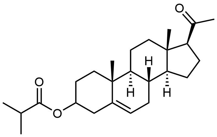 Synonyms: (8S,9S,10R,13S,14S,17S)-17-acetyl-10,13-dimethyl-2,3,4,7,8,9,10,11,12,13,14,15,16,17-tetradecahydro-1H-cyclopenta[a]phenanthren-3-yl isobutyrate