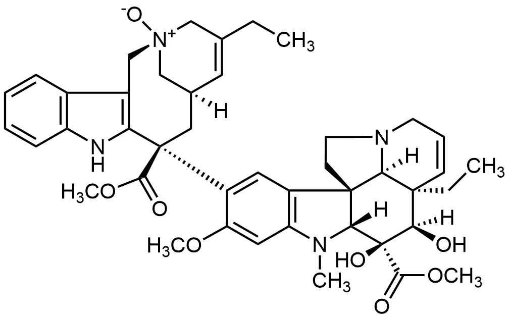 Synonyms: (2S,6R,8S)-4-ethyl-8-((3aR,3a1R,4R,5S,5aR,10bR)-3a-ethyl-4,5-dihydroxy-8-methoxy-5-(methoxycarbonyl)-6-methyl-3a,3a1,4,5,5a,6,11,12-octahydro-1H-indolizino[8,1-cd]carbazol-9-yl)-8-(methoxycarbonyl)-1,3,6,7,8,9-hexahydro-2H-2,6-methanoazecino[4,3-b]indole 2-oxide