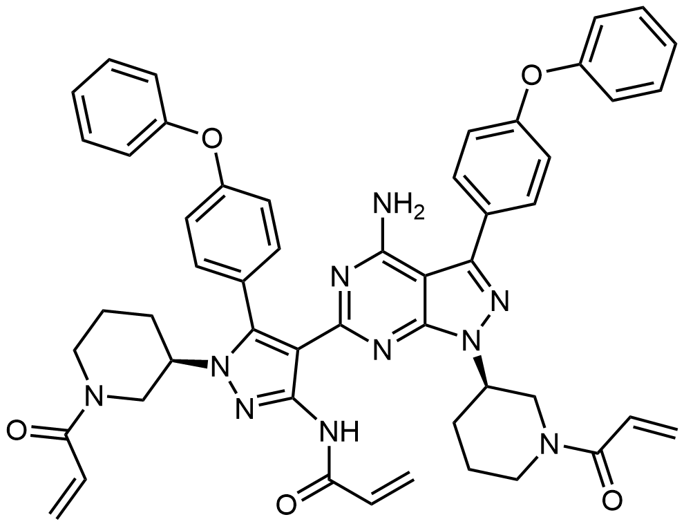 Synonyms: N-(1-((R)-1-acryloylpiperidin-3-yl)-4-(1-((R)-1-acryloylpiperidin-3-yl)-4-amino-3-(4-phenoxyphenyl)-1H-pyrazolo[3,4-d]pyrimidin-6-yl)-5-(4-phenoxyphenyl)-1H-pyrazol-3-yl)acrylamide