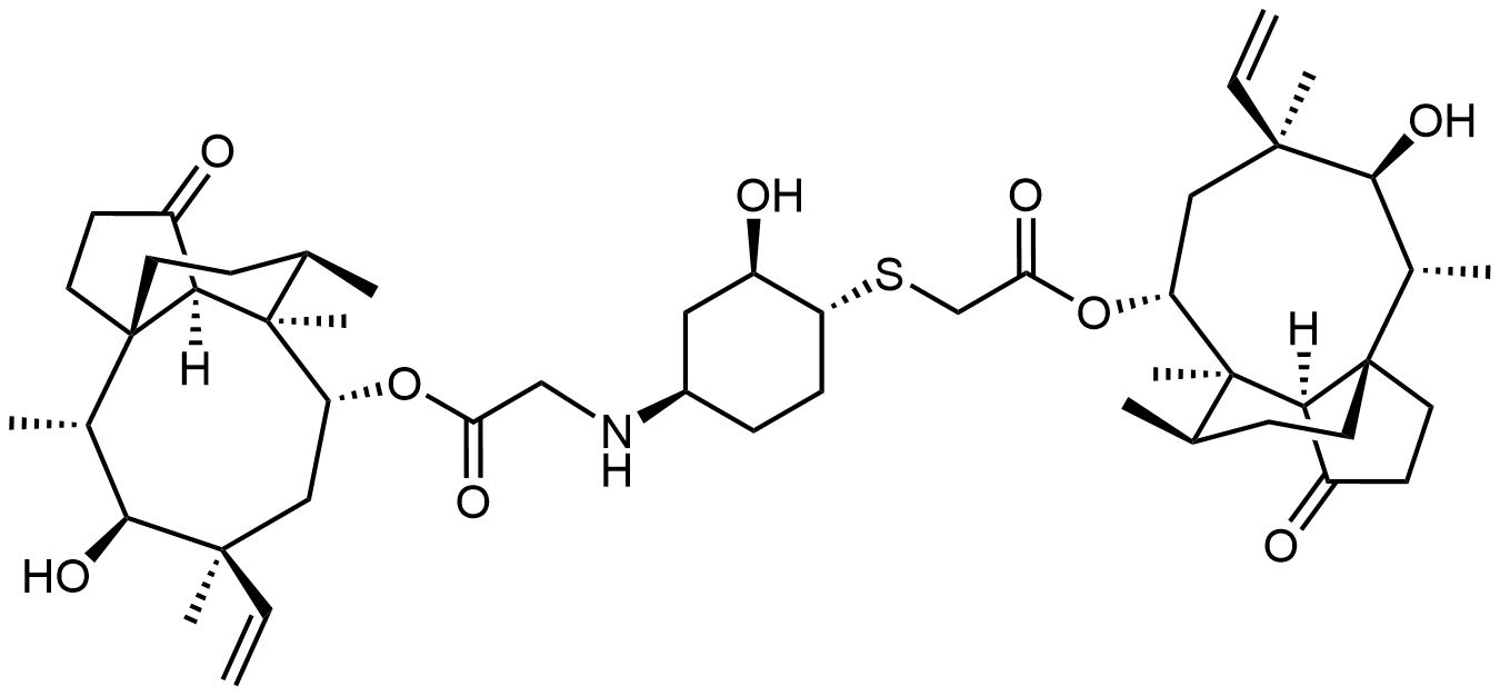 Synonyms: (3aR,4R,5R,7S,8S,9R,9aS,12R)-8-hydroxy-4,7,9,12-tetramethyl-3-oxo-7-vinyldecahydro-4,9a-propanocyclopenta[8]annulen-5-yl 2-(((1R,2R,4R)-2-hydroxy-4-((2-(((3aR,4R,5R,7S,8S,9R,9aS,12R)-8-hydroxy-4,7,9,12-tetramethyl-3-oxo-7-vinyldecahydro-4,9a-propanocyclopenta[8]annulen-5-yl)oxy)-2-oxoethyl)amino)cyclohexyl)thio)acetate