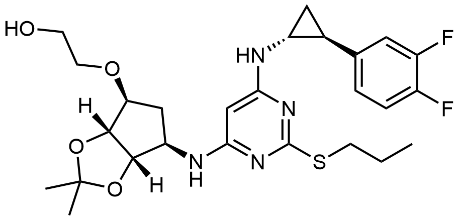 Synonyms: 2-(((3aR,4S,6R,6aS)-6-((6-(((1R,2S)-2-(3,4-difluorophenyl)cyclopropyl)amino)-2-(propylthio)pyrimidin-4-yl)amino)-2,2-dimethyltetrahydro-4H-cyclopenta[d][1,3]dioxol-4-yl)oxy)ethan-1-ol