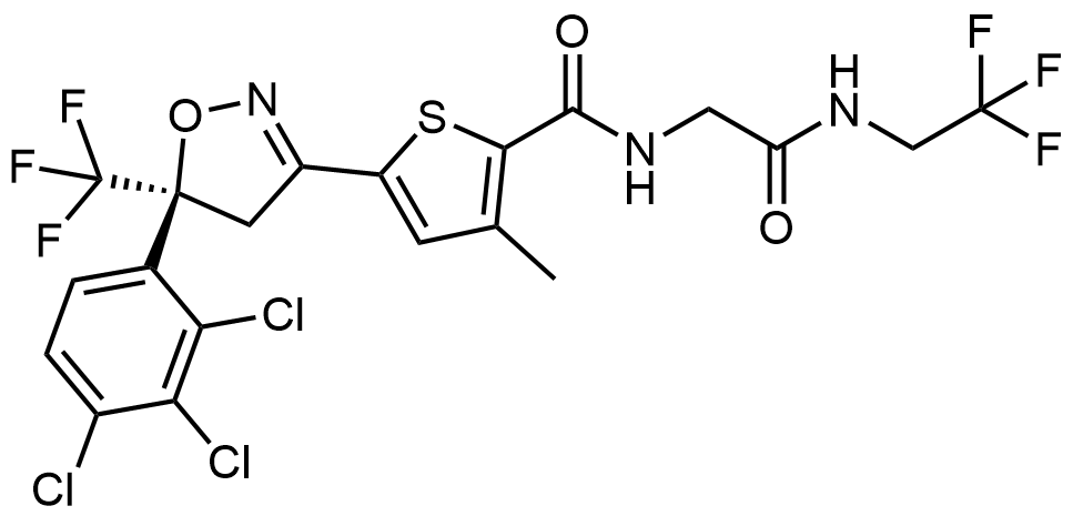 Synonyms: (S)-3-methyl-N-(2-oxo-2-((2,2,2-trifluoroethyl)amino)ethyl)-5-(5-(2,3,4-trichlorophenyl)-5-(trifluoromethyl)-4,5-dihydroisoxazol-3-yl)thiophene-2-carboxamide