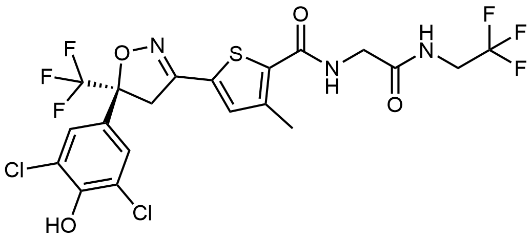 Synonyms: (S)-5-(5-(3,5-dichloro-4-hydroxyphenyl)-5-(trifluoromethyl)-4,5-dihydroisoxazol-3-yl)-3-methyl-N-(2-oxo-2-((2,2,2-trifluoroethyl)amino)ethyl)thiophene-2-carboxamide
