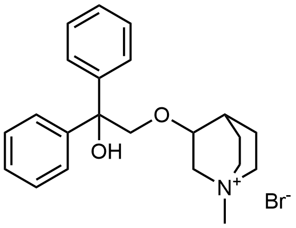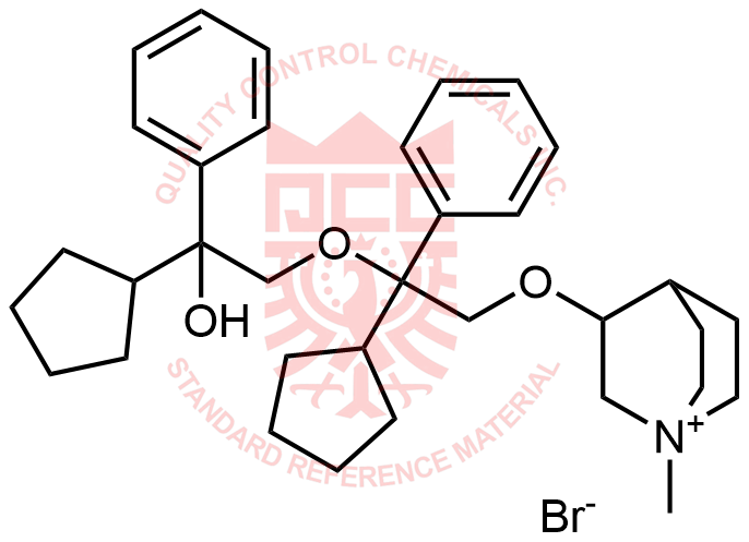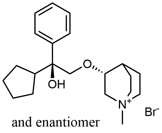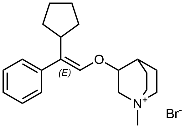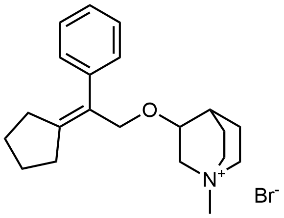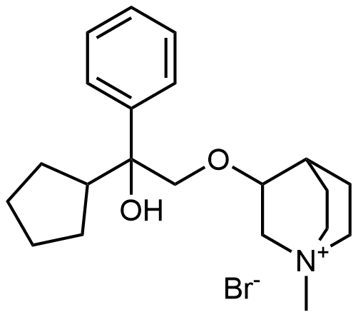 Synonyms: 3-(2-cyclopentyl-2-hydroxy-2-phenylethoxy)-1-methylquinuclidin-1-ium bromide