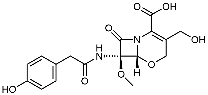 Synonyms: (6R,7R)-3-(hydroxymethyl)-7-(2-(4-hydroxyphenyl)acetamido)-7-methoxy-8-oxo-5-oxa-1-azabicyclo[4.2.0]oct-2-ene-2-carboxylic acid