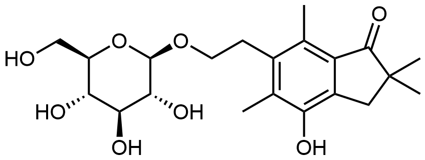 Synonyms: 4-hydroxy-2,2,5,7-tetramethyl-6-(2-(((2R,3R,4S,5S,6R)-3,4,5-trihydroxy-6-(hydroxymethyl)tetrahydro-2H-pyran-2-yl)oxy)ethyl)-2,3-dihydro-1H-inden-1-one