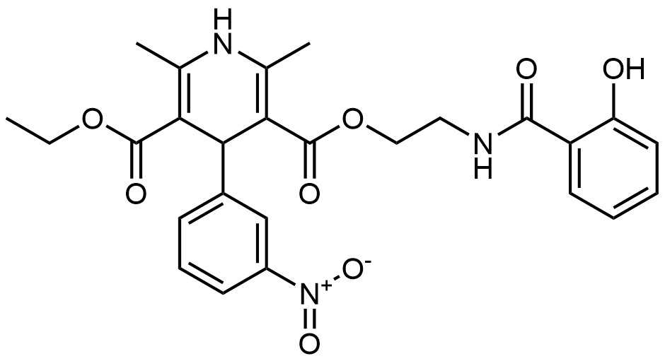 Synonyms: 3-ethyl 5-(2-(2-hydroxybenzamido)ethyl) 2,6-dimethyl-4-(3-nitrophenyl)-1,4-dihydropyridine-3,5-dicarboxylate