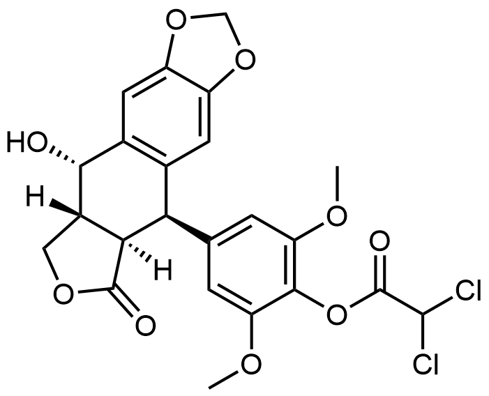 Synonyms: 4-((5R,5aR,8aR,9S)-9-hydroxy-6-oxo-5,5a,6,8,8a,9-hexahydrofuro[3',4':6,7]naphtho[2,3-d][1,3]dioxol-5-yl)-2,6-dimethoxyphenyl 2,2-dichloroacetate