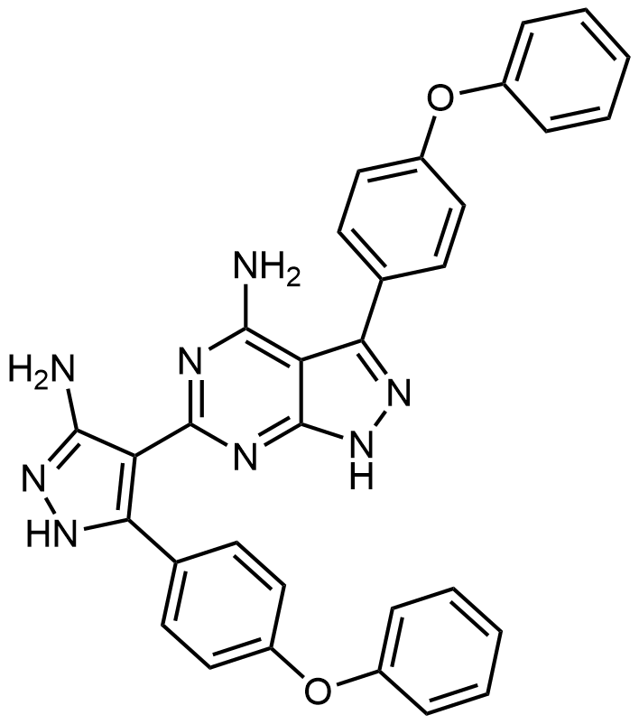 Synonyms: 6-(3-amino-5-(4-phenoxyphenyl)-1H-pyrazol-4-yl)-3-(4-phenoxyphenyl)-1H-pyrazolo[3,4-d]pyrimidin-4-amine