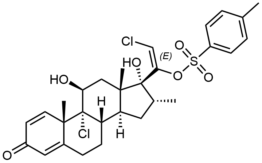 Synonyms: (E)-2-chloro-1-((8S,9R,10S,11S,13S,14S,16R,17R)-9-chloro-11,17-dihydroxy-10,13,16-trimethyl-3-oxo-6,7,8,9,10,11,12,13,14,15,16,17-dodecahydro-3H-cyclopenta[a]phenanthren-17-yl)vinyl 4-methylbenzenesulfonate