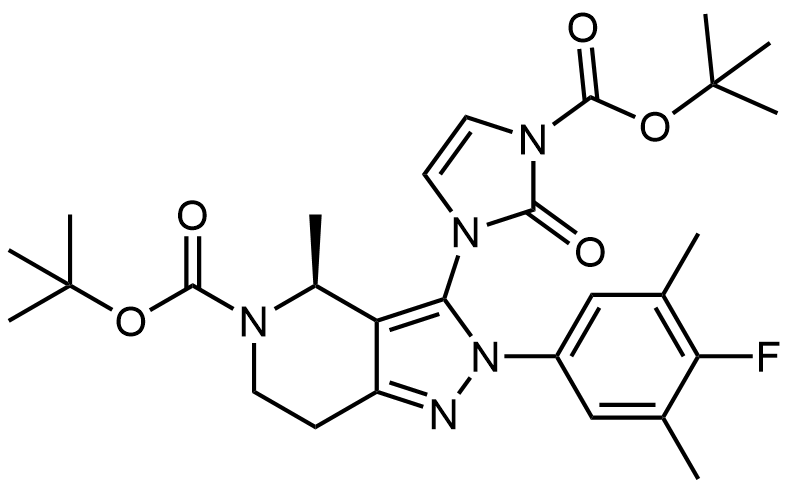 Synonyms: tert-butyl (S)-3-(3-(tert-butoxycarbonyl)-2-oxo-2,3-dihydro-1H-imidazol-1-yl)-2-(4-fluoro-3,5-dimethylphenyl)-4-methyl-2,4,6,7-tetrahydro-5H-pyrazolo[4,3-c]pyridine-5-carboxylate