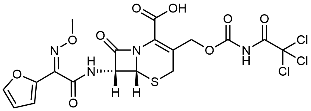 Synonyms: (6R,7R)-7-((Z)-2-(furan-2-yl)-2-(methoxyimino)acetamido)-8-oxo-3-((((2,2,2-trichloroacetyl)carbamoyl)oxy)methyl)-5-thia-1-azabicyclo[4.2.0]oct-2-ene-2-carboxylic acid