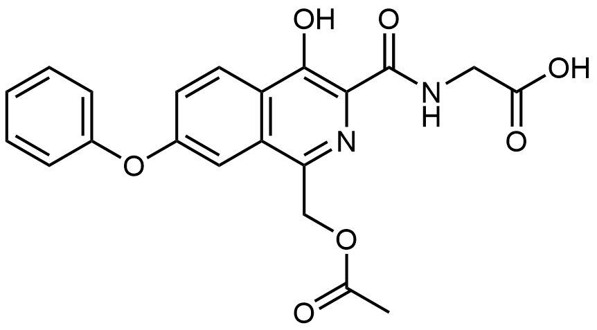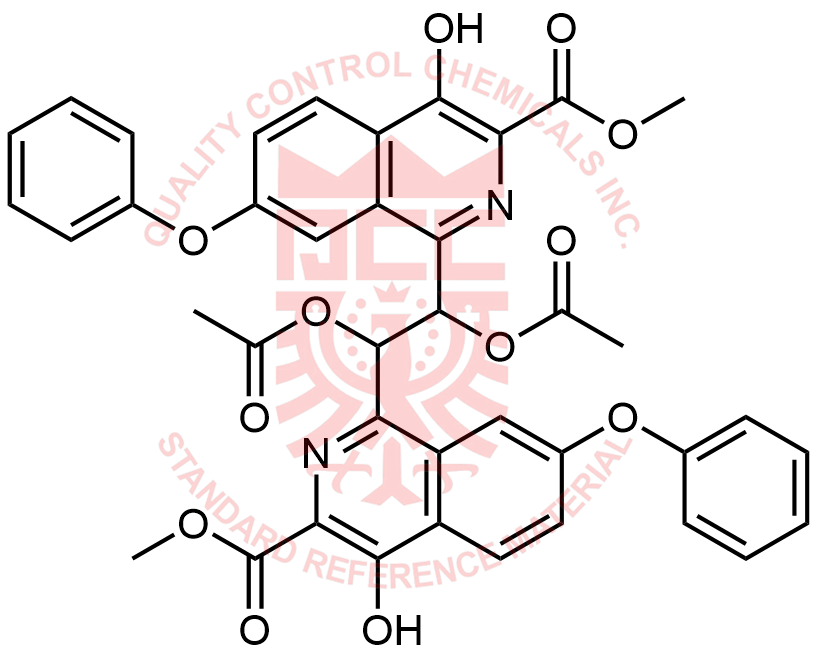Synonyms: dimethyl 1,1'-(1,2-diacetoxyethane-1,2-diyl)bis(4-hydroxy-7-phenoxyisoquinoline-3-carboxylate)