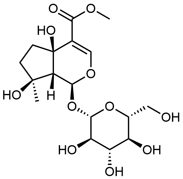Synonyms: methyl (1S,4aR,7S,7aR)-4a,7-dihydroxy-7-methyl-1-(((2S,3R,4S,5S,6R)-3,4,5-trihydroxy-6-(hydroxymethyl)tetrahydro-2H-pyran-2-yl)oxy)-1,4a,5,6,7,7a-hexahydrocyclopenta[c]pyran-4-carboxylate
