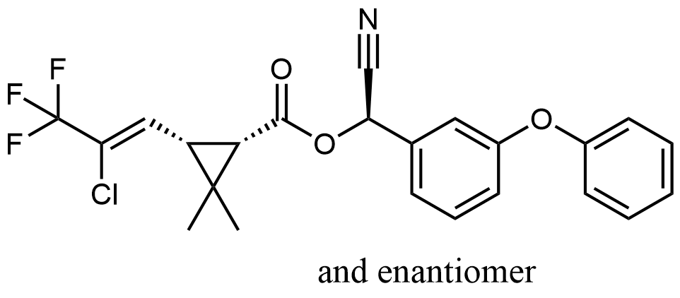 Synonyms: (R)-cyano(3-phenoxyphenyl)methyl (1S,3S)-3-((Z)-2-chloro-3,3,3-trifluoroprop-1-en-1-yl)-2,2-dimethylcyclopropane-1-carboxylate/(S)-cyano(3-phenoxyphenyl)methyl (1R,3R)-3-((Z)-2-chloro-3,3,3-trifluoroprop-1-en-1-yl)-2,2-dimethylcyclopropane-1-carboxylate