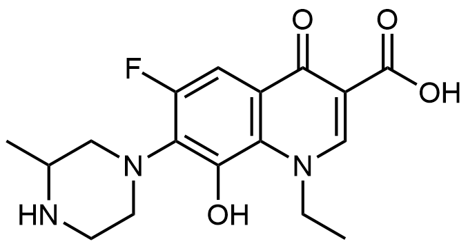 Synonyms: 1-ethyl-6-fluoro-8-hydroxy-7-(3-methylpiperazin-1-yl)-4-oxo-1,4-dihydroquinoline-3-carboxylic acid