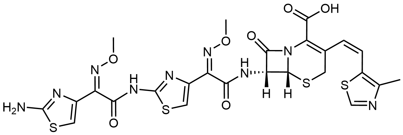 Synonyms: (6R,7R)-7-((Z)-2-(2-((Z)-2-(2-aminothiazol-4-yl)-2-(methoxyimino)acetamido)thiazol-4-yl)-2-(methoxyimino)acetamido)-3-((Z)-2-(4-methylthiazol-5-yl)vinyl)-8-oxo-5-thia-1-azabicyclo[4.2.0]oct-2-ene-2-carboxylic acid