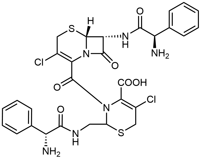 Synonyms: 7-(2-(2-amino-2-phenylacetamido)-2-phenylacetamido)-3-chloro-8-oxo-5-thia-1-azabicyclo[4.2.0]oct-2-ene-2-carboxylic acid