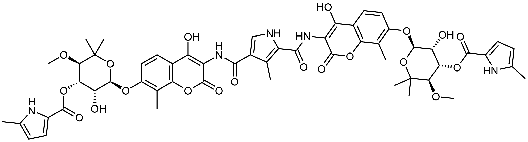 Synonyms: (2R,2'R,3R,3'R,4S,4'S,5R,5'R)-((((3-methyl-1H-pyrrole-2,4-dicarbonyl)bis(azanediyl))bis(4-hydroxy-8-methyl-2-oxo-2H-chromene-3,7-diyl))bis(oxy))bis(3-hydroxy-5-methoxy-6,6-dimethyltetrahydro-2H-pyran-2,4-diyl) bis(5-methyl-1H-pyrrole-2-carboxylate)
