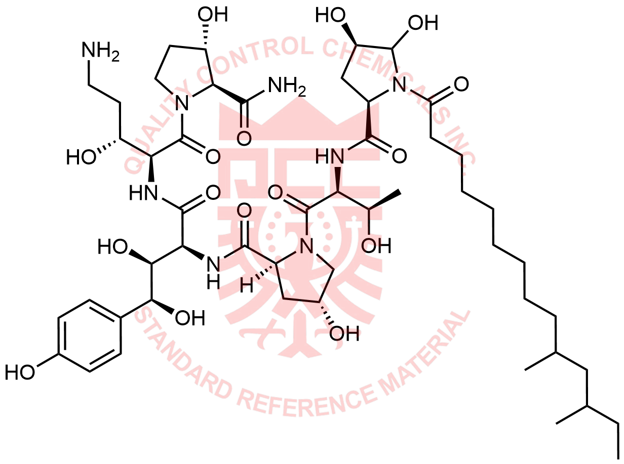 Synonyms: (2R,4R)-N-((2S,3R)-1-((2S,4R)-2-(((2S,3S,4S)-1-(((2S,3R)-5-amino-1-((2S,3S)-2-carbamoyl-3-hydroxypyrrolidin-1-yl)-3-hydroxy-1-oxopentan-2-yl)amino)-3,4-dihydroxy-4-(4-hydroxyphenyl)-1-oxobutan-2-yl)carbamoyl)-4-hydroxypyrrolidin-1-yl)-3-hydroxy-1-oxobutan-2-yl)-1-(10,12-dimethyltetradecanoyl)-4,5-dihydroxypyrrolidine-2-carboxamide