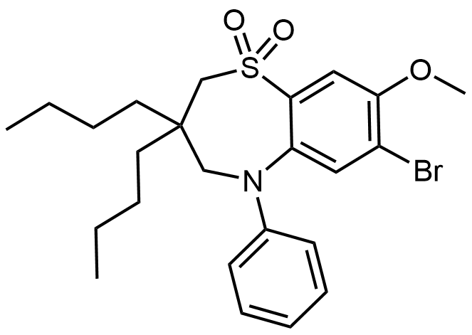 Synonyms: 7-bromo-3,3-dibutyl-8-methoxy-5-phenyl-2,3,4,5-tetrahydrobenzo[b][1,4]thiazepine 1,1-dioxide