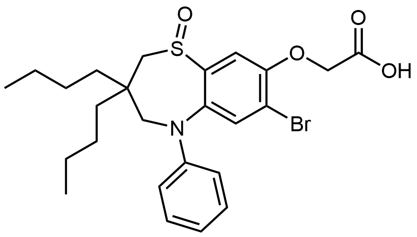 Synonyms: 2-((7-bromo-3,3-dibutyl-1-oxido-5-phenyl-2,3,4,5-tetrahydrobenzo[b][1,4]thiazepin-8-yl)oxy)acetic acid