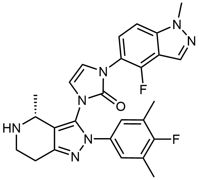 Synonyms: (R)-1-(4-fluoro-1-methyl-1H-indazol-5-yl)-3-(2-(4-fluoro-3,5-dimethylphenyl)-4-methyl-4,5,6,7-tetrahydro-2H-pyrazolo[4,3-c]pyridin-3-yl)-1,3-dihydro-2H-imidazol-2-one