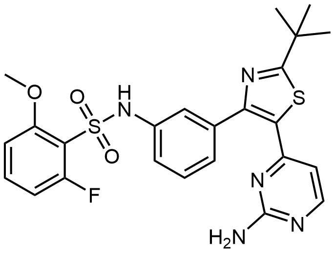 Synonyms: N-(3-(5-(2-aminopyrimidin-4-yl)-2-(tert-butyl)thiazol-4-yl)phenyl)-2-fluoro-6-methoxybenzenesulfonamide