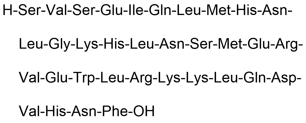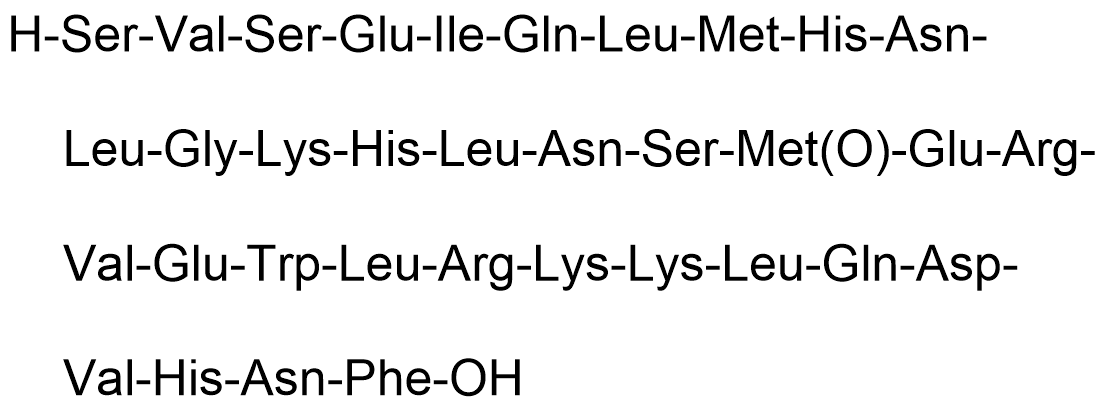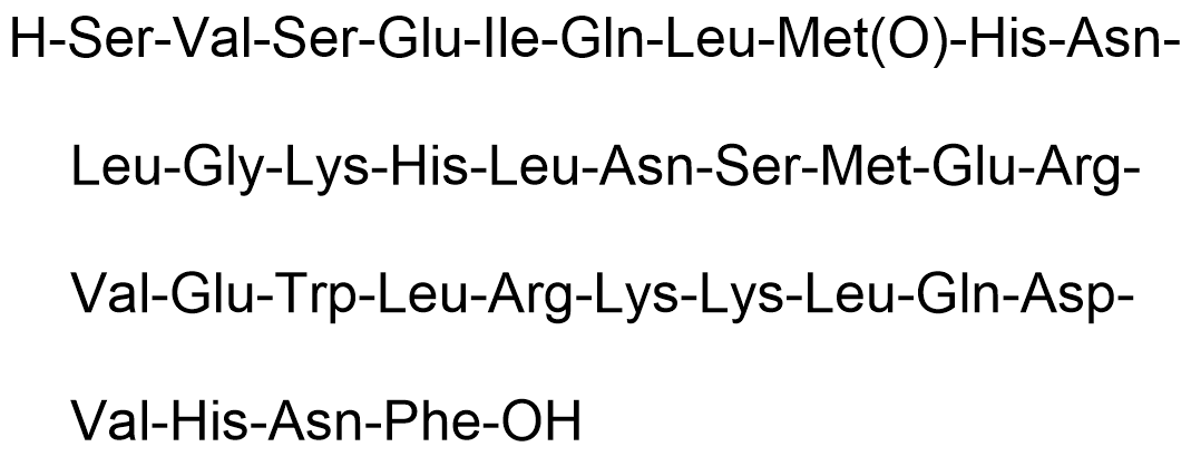Synonyms: H-Ser-Val-Ser-Glu-Ile-Gln-Leu-Met(O)-His-Asn-Leu-Gly-Lys-His-Leu-Asn-Ser-Met-Glu-Arg-Val-Glu-Trp-Leu-Arg-Lys-Lys-Leu-Gln-Asp-Val-His-Asn-Phe-OH