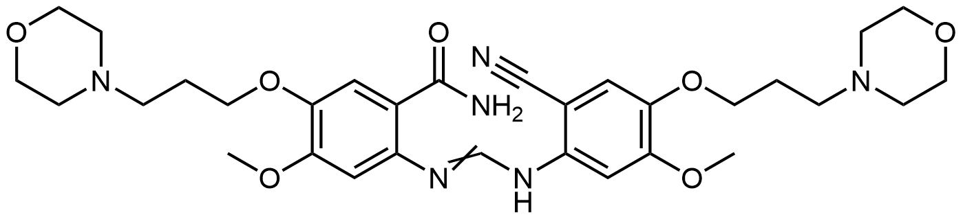 Synonyms: 2-((((2-cyano-5-methoxy-4-(3-morpholinopropoxy)phenyl)amino)methylene)amino)-4-methoxy-5-(3-morpholinopropoxy)benzamide