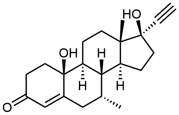 Synonyms: (7R,8S,9S,10S,13S,14S,17R)-17-ethynyl-10,17-dihydroxy-7,13-dimethyl-1,2,6,7,8,9,10,11,12,13,14,15,16,17-tetradecahydro-3H-cyclopenta[a]phenanthren-3-one