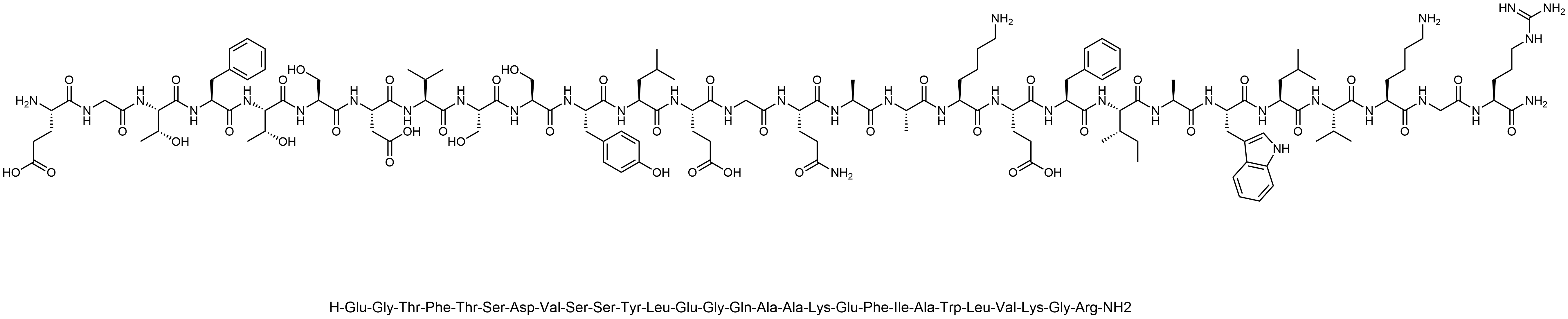 Synonyms: H-Glu-Gly-Thr-Phe-Thr-Ser-Asp-Val-Ser-Ser-Tyr-Leu-Glu-Gly-Gln-Ala-Ala-Lys-Glu-Phe-Ile-Ala-Trp-Leu-Val-Lys-Gly-Arg-NH2