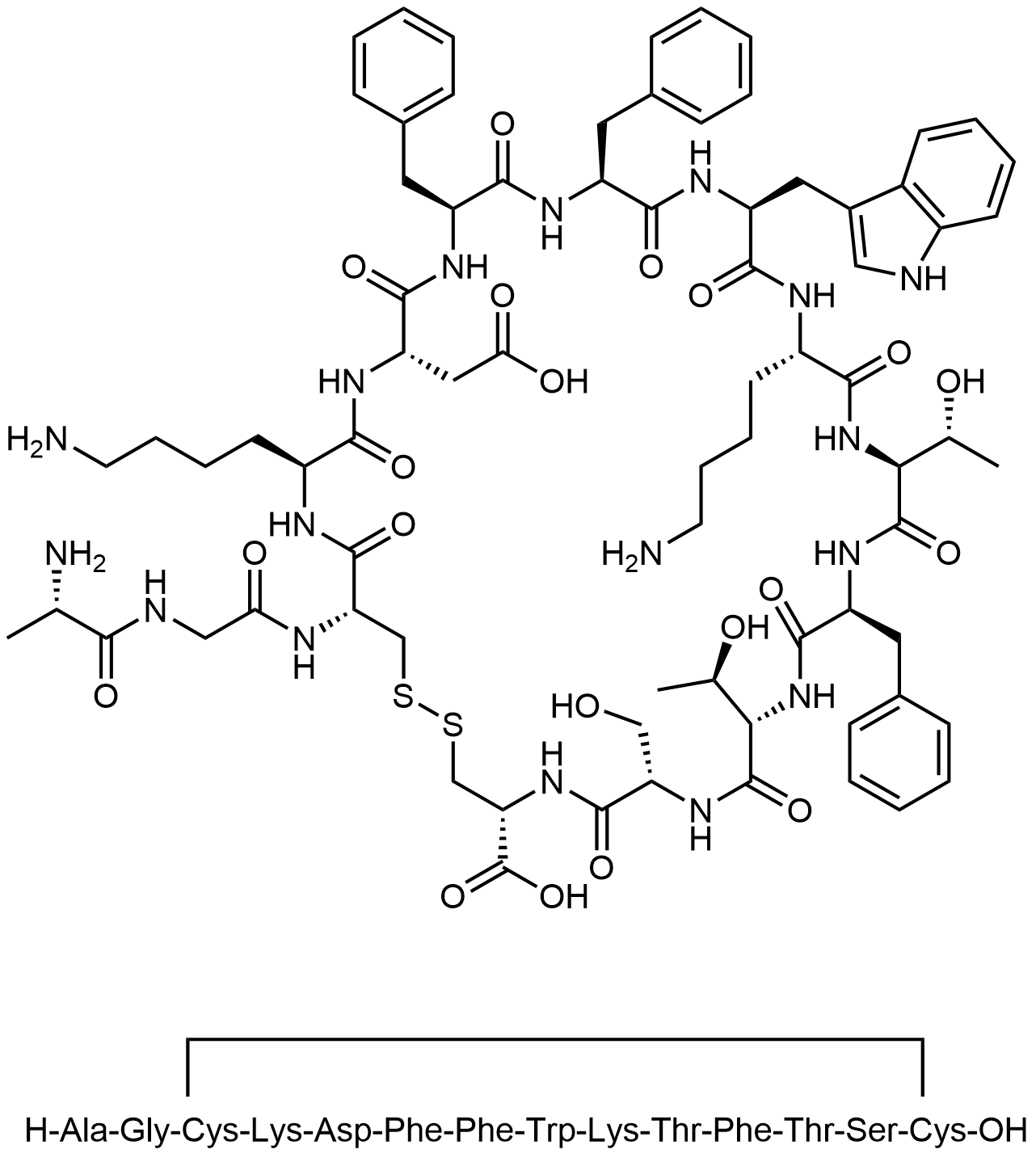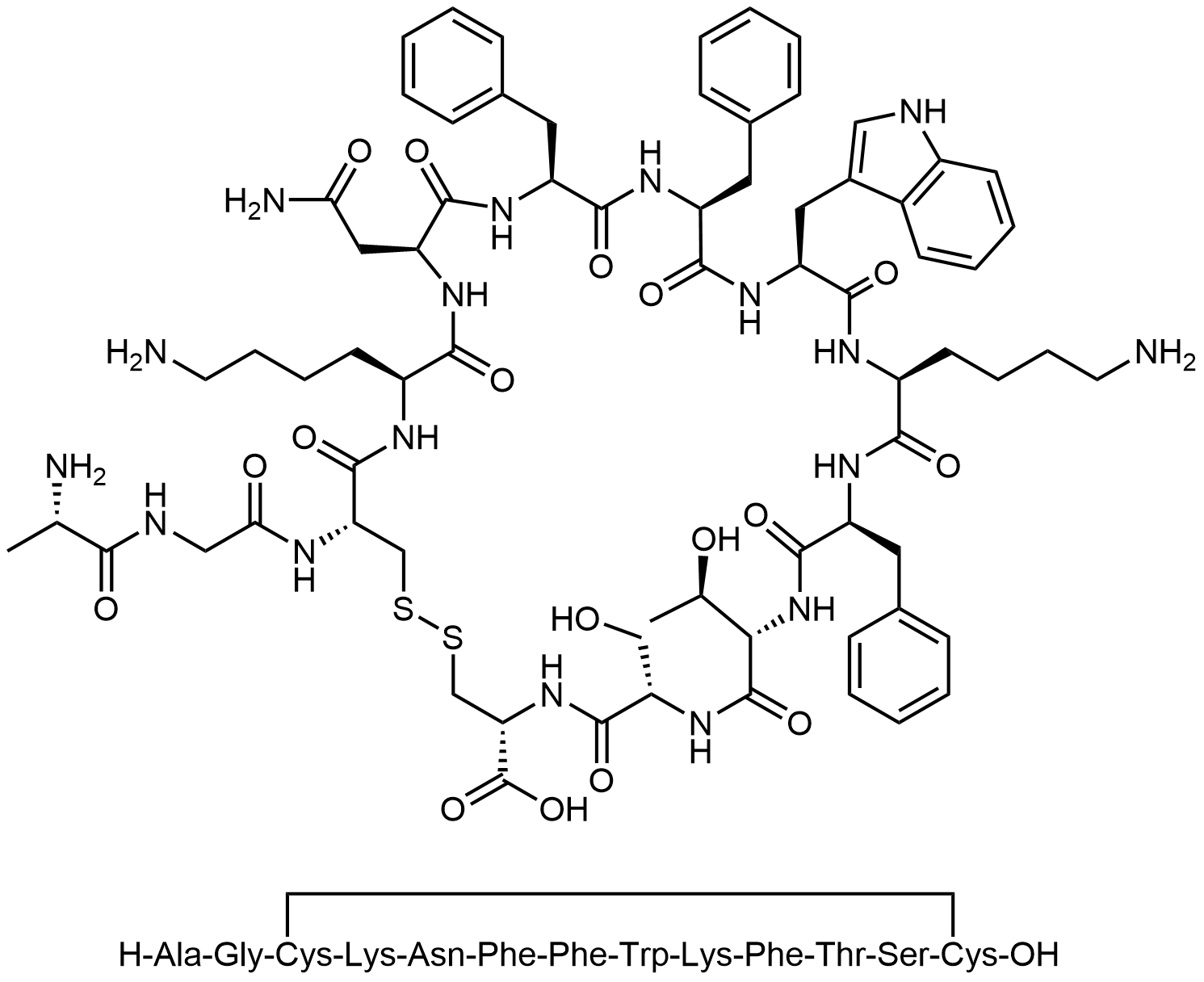 Synonyms: (4R,7S,10S,13S,16S,19S,22S,25S,28S,32S,35S,38R)-22-((1H-indol-3-yl)methyl)-19,35-bis(4-aminobutyl)-38-(2-((S)-2-aminopropanamido)acetamido)-13,25,28-tribenzyl-10,16-bis((R)-1-hydroxyethyl)-7-(hydroxymethyl)-6,9,12,15,18,21,24,27,30,34,37-undecaoxo-1,2-dithia-5,8,11,14,17,20,23,26,29,33,36-undecaazacyclononatriacontane-4,32-dicarboxylic acid