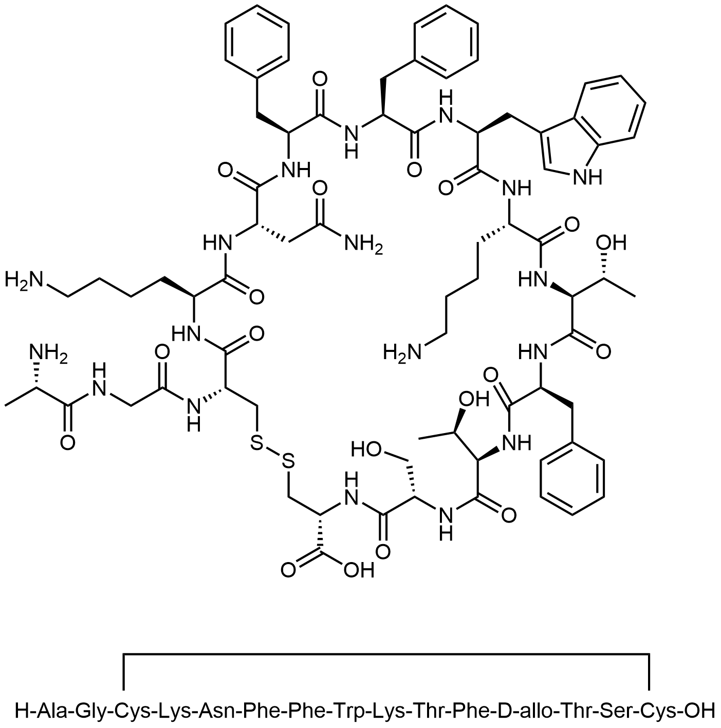 Synonyms: (4R,7S,10R,13S,16S,19S,22S,25S,28S,31S,34S,37R)-22-((1H-indol-3-yl)methyl)-31-(2-amino-2-oxoethyl)-19,34-bis(4-aminobutyl)-37-(2-((S)-2-aminopropanamido)acetamido)-13,25,28-tribenzyl-10,16-bis((R)-1-hydroxyethyl)-7-(hydroxymethyl)-6,9,12,15,18,21,24,27,30,33,36-undecaoxo-1,2-dithia-5,8,11,14,17,20,23,26,29,32,35-undecaazacyclooctatriacontane-4-carboxylic acid