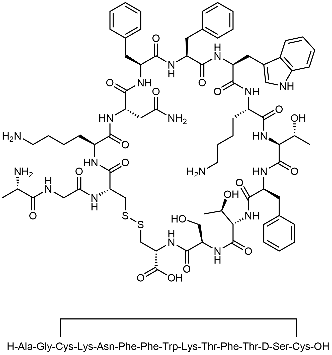 Synonyms: (4R,7R,10S,13S,16S,19S,22S,25S,28S,31S,34S,37R)-22-((1H-indol-3-yl)methyl)-31-(2-amino-2-oxoethyl)-19,34-bis(4-aminobutyl)-37-(2-((S)-2-aminopropanamido)acetamido)-13,25,28-tribenzyl-10,16-bis((R)-1-hydroxyethyl)-7-(hydroxymethyl)-6,9,12,15,18,21,24,27,30,33,36-undecaoxo-1,2-dithia-5,8,11,14,17,20,23,26,29,32,35-undecaazacyclooctatriacontane-4-carboxylic acid