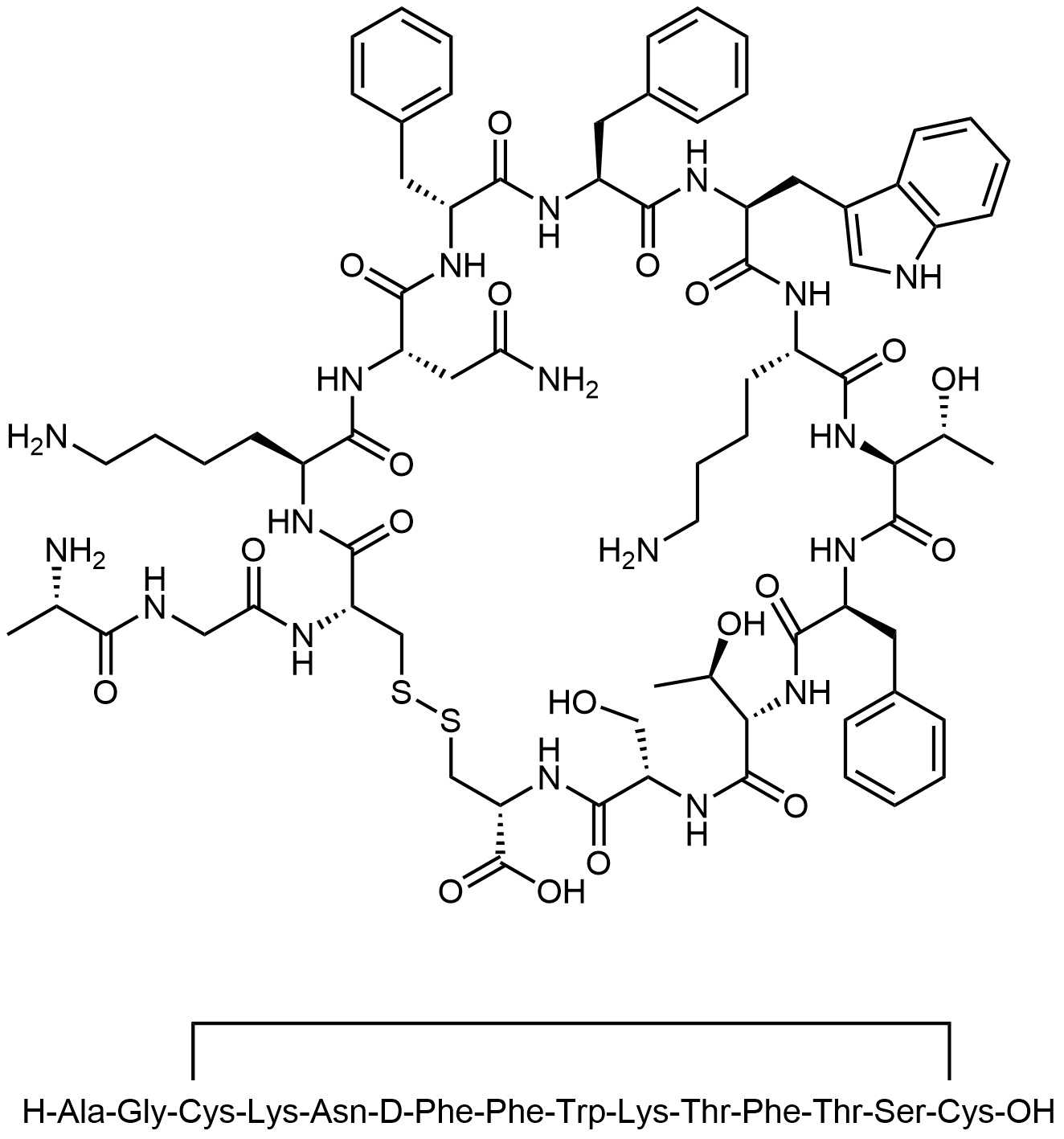 Synonyms: (4R,7S,10S,13S,16S,19S,22S,25S,28R,31S,34S,37R)-22-((1H-indol-3-yl)methyl)-31-(2-amino-2-oxoethyl)-19,34-bis(4-aminobutyl)-37-(2-((S)-2-aminopropanamido)acetamido)-13,25,28-tribenzyl-10,16-bis((R)-1-hydroxyethyl)-7-(hydroxymethyl)-6,9,12,15,18,21,24,27,30,33,36-undecaoxo-1,2-dithia-5,8,11,14,17,20,23,26,29,32,35-undecaazacyclooctatriacontane-4-carboxylic acid