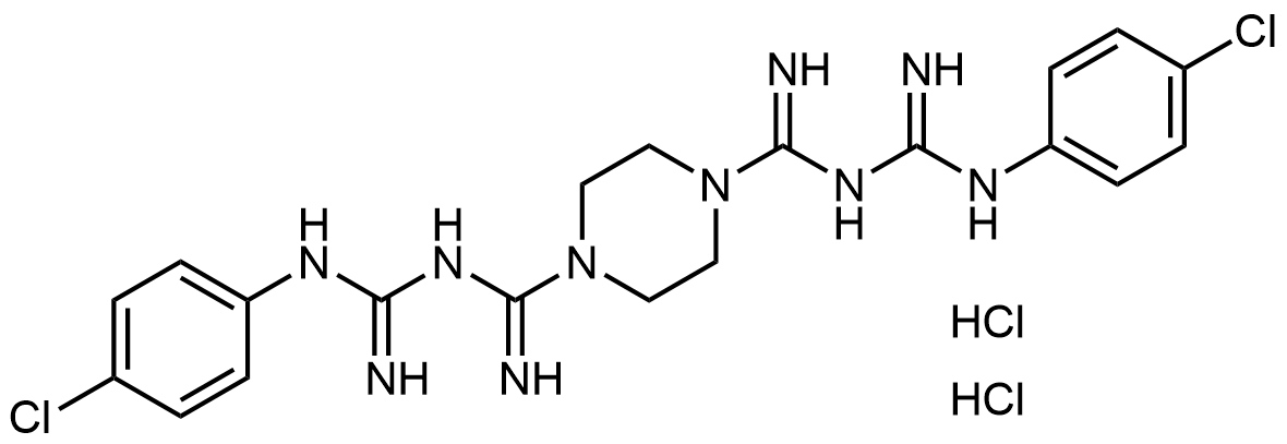 Synonyms: N1,N4-bis(N-(4-chlorophenyl)carbamimidoyl)piperazine-1,4-bis(carboximidamide) dihydrochloride