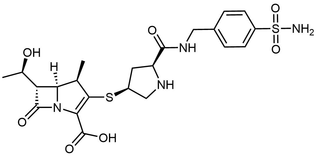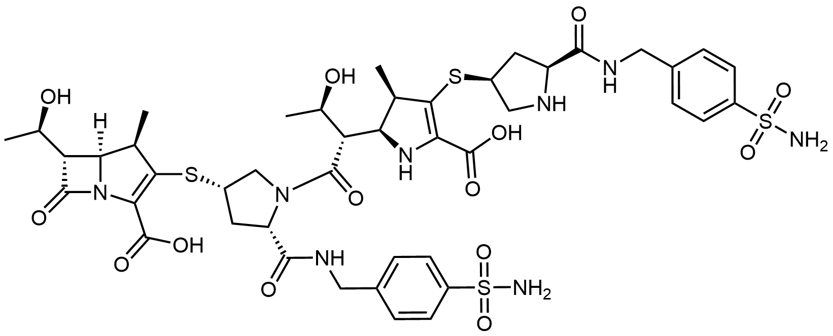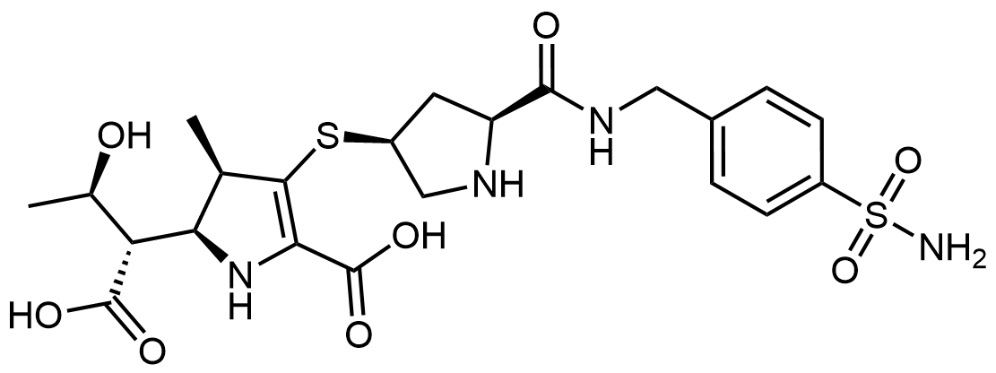 Synonyms: (4R,5S)-5-((1S,2R)-1-carboxy-2-hydroxypropyl)-4-methyl-3-(((3S,5S)-5-((4-sulfamoylbenzyl)carbamoyl)pyrrolidin-3-yl)thio)-4,5-dihydro-1H-pyrrole-2-carboxylic acid