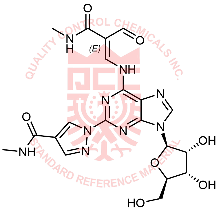 Synonyms: 1-(9-((2R,3R,4S,5R)-3,4-dihydroxy-5-(hydroxymethyl)tetrahydrofuran-2-yl)-6-(((E)-2-formyl-3-(methylamino)-3-oxoprop-1-en-1-yl)amino)-9H-purin-2-yl)-N-methyl-1H-pyrazole-4-carboxamide