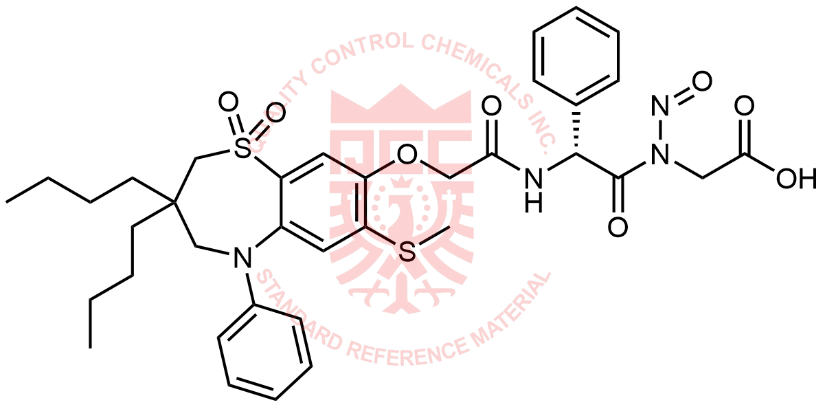 Synonyms: (R)-N-(2-(2-((3,3-dibutyl-7-(methylthio)-1,1-dioxido-5-phenyl-2,3,4,5-tetrahydrobenzo[b][1,4]thiazepin-8-yl)oxy)acetamido)-2-phenylacetyl)-N-nitrosoglycine