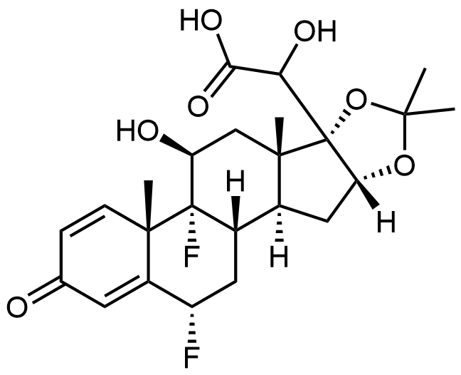 Synonyms: 2-((2S,6aS,6bR,7S,8aS,8bR,11aR,12aS,12bS)-2,6b-difluoro-7-hydroxy-6a,8a,10,10-tetramethyl-4-oxo-1,2,4,6a,6b,7,8,8a,11a,12,12a,12b-dodecahydro-8bH-naphtho[2',1':4,5]indeno[1,2-d][1,3]dioxol-8b-yl)-2-hydroxyacetic acid